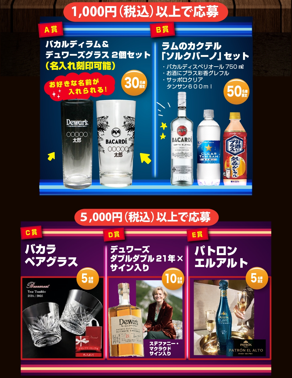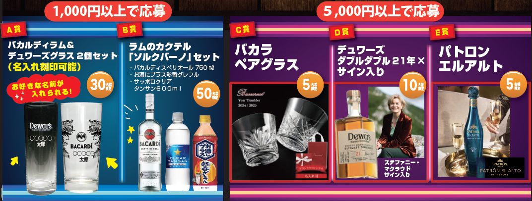 ・【C賞】【D賞】【E賞】:対象商品が合計5,000円(税込)以上のレシートで抽選対象となります。